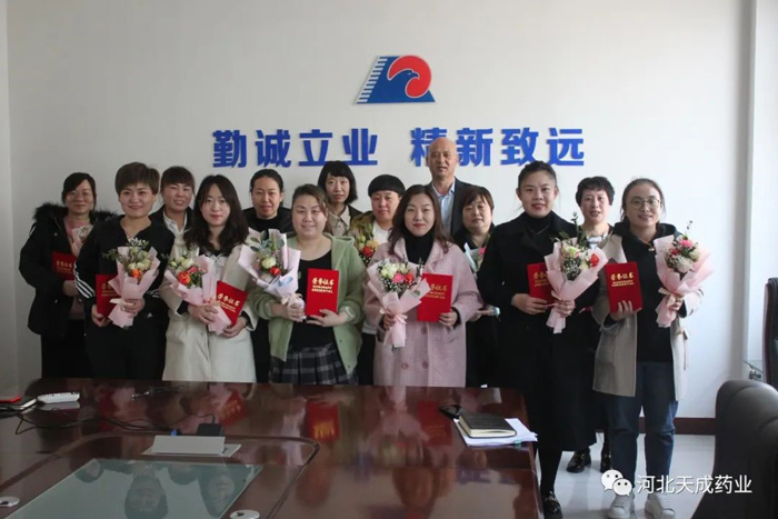 3月8日上午,河北天成藥業(yè)開(kāi)展“風(fēng)華時(shí)代女性,共建美麗天成“三●八"紅旗手頒獎(jiǎng)活動(dòng)。公司黨總.支副書(shū)記、工會(huì)主席王頤為接受表彰的17位先進(jìn)個(gè)人頒發(fā)“三●八"紅旗手證書(shū)、鮮花和獎(jiǎng)品。