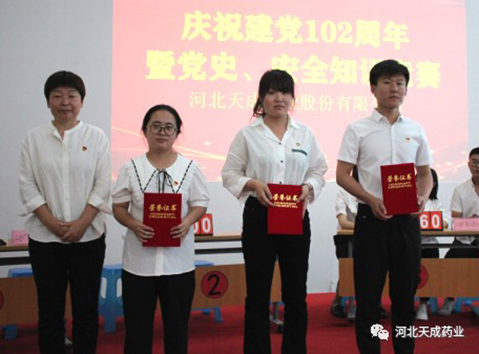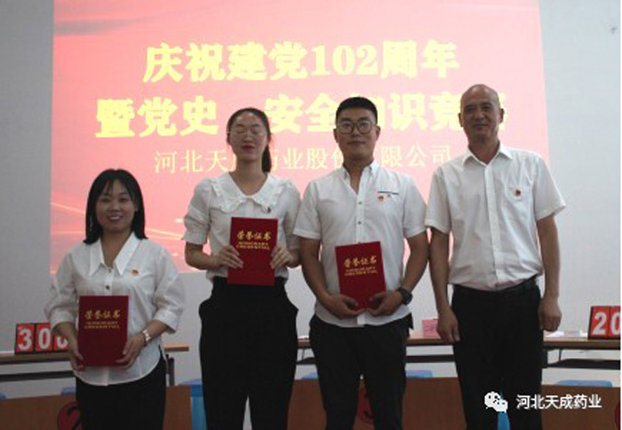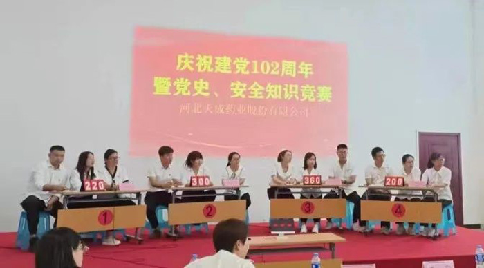 守望初心勇?lián)?dāng),篤定前行綻芳華 | 河北天成藥業(yè)開展慶祝建黨102周年優(yōu)秀黨員及先進黨小組表彰大會暨主題黨史及安全知識競賽活動