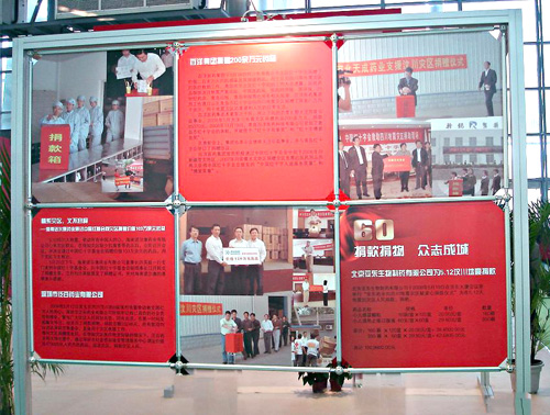 在此次全國藥品交易會上,組委會舉辦了60屆專題回顧活動。在“眾志成城,抗震救災(zāi)——用我們的愛心給你們力量”大型圖片展,對全國醫(yī)藥企業(yè),在四川汶川地震時的奉獻(xiàn)愛心活動進(jìn)行了報導(dǎo),并刊登了我公司王振剛總經(jīng)理以及我公司員工捐款活動的大幅照片,四川醫(yī)藥工業(yè)協(xié)會向支持抗震救災(zāi)的藥界同仁,表示衷心感謝和致敬。全國藥品交易會組委會表示,為了支持災(zāi)區(qū)重建,全國藥品交易會將在四川連續(xù)舉辦三次。