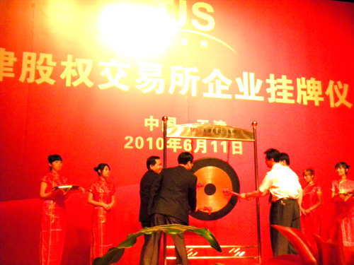 2010年6月11日上午9點29分,一個讓天成人永遠銘記的時刻,隨著四柄紅槌一起敲響天交所的開市銅鑼,河北天成藥業股份有限公司股權在天津股權交易所鳴鑼開市,當日成交338000股,成交金額118.3萬元。