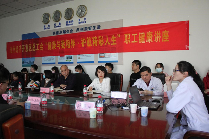 為進一步發(fā)揮“職工健康生活室”服務職工的作用,切實響應國務院《健康中國行動(2019-2030年)》發(fā)展戰(zhàn)略,提高廣大職工自我健康管理意識,掌握健康知識,建設健康環(huán)境,近日,公司工會聯(lián)合滄州市人民醫(yī)院特舉辦“健康與我相伴·護航精彩人生”職工健康講座活動。