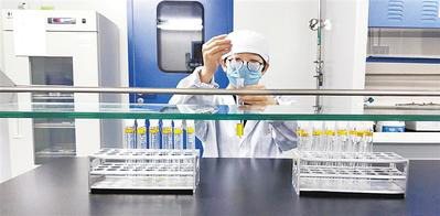 在河北天成藥業股份有限公司中心化驗室,化驗員正在對新生產出來的注射用過氧化碳酰胺進行質量檢驗。河北日報通訊員 鄭富貴攝