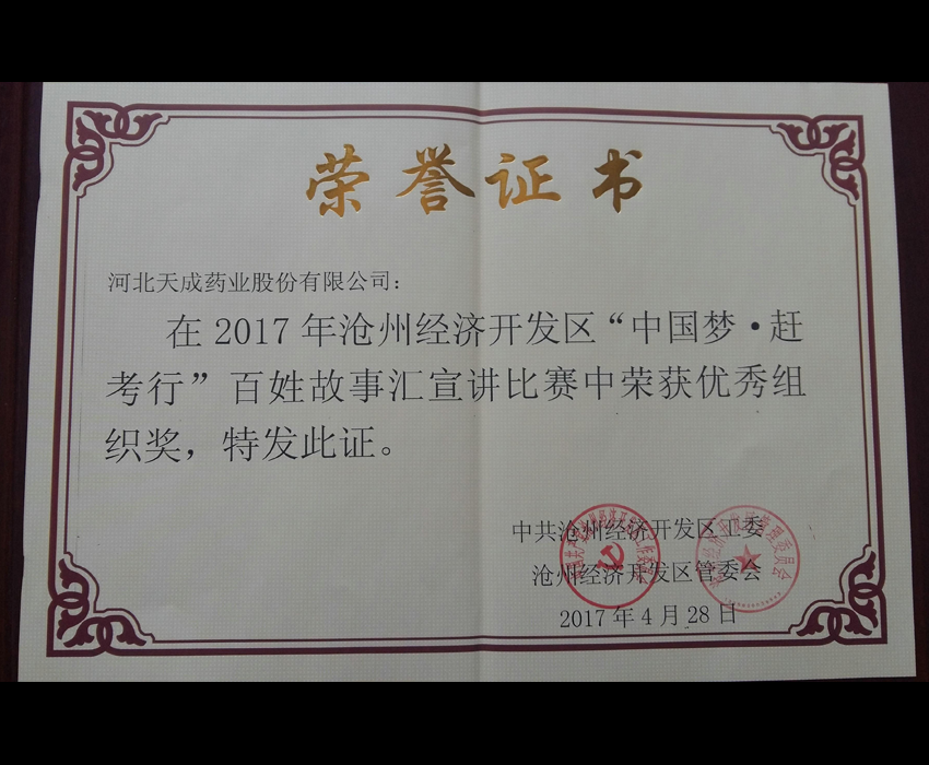 我公司被評為“優秀組織獎”